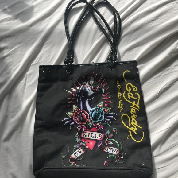 Iconic Ed Hardy by Christian Audigier tote bag. Perfect condition. Gorgeous silver hardware and black leather straps. Y2k vibes!