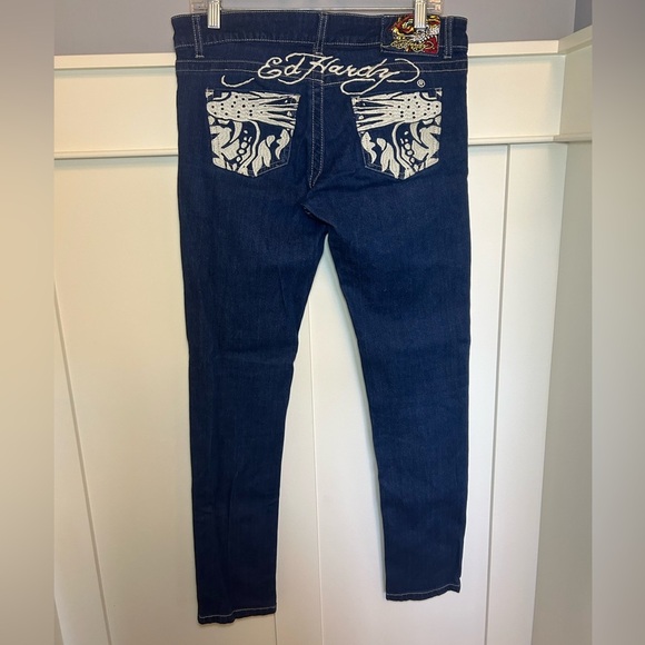 Ed Hardy tiger embroidered distressed jeans size 29"