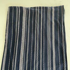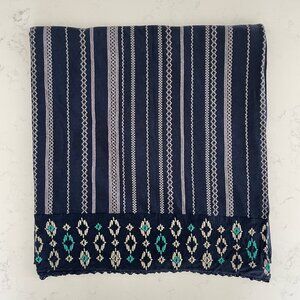 Eddie Bauer Casual 100% Cotton Striped 72" x 35" Wrap/Scarf in Navy + Grey w 4" Embroidered End Panels Green + Cream