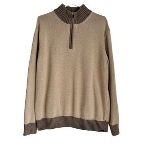 Eddie Bauer 100% cotton 1/4 zip tan knit sweater size XL