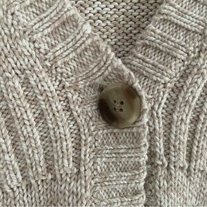 Eddie Bauer 3/4 sleeve 100% cotton cardigan. Single button front closure. Oatmeal/cream heathered colour.