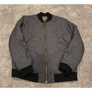 The Eddie Bauer 1936 Skyliner Model Down Jacket in men's size large and gray color is a stylish and classic bomber jacket perfect for colder weather. Made with high-quality down insulation, this jacket provides warmth and comfort. The quilted design adds a touch of sophistication to the outer shell, while the zip closure makes it easy to put on and take off. This jacket is ideal for men looking for a reliable and fashionable outerwear option.