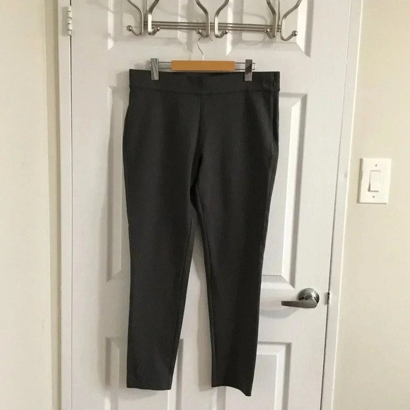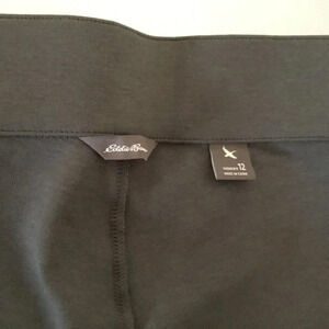 Eddie Bauer 48% Cotton Ponte Knit Pants Gray pull on Flat Front Trouser Size 12