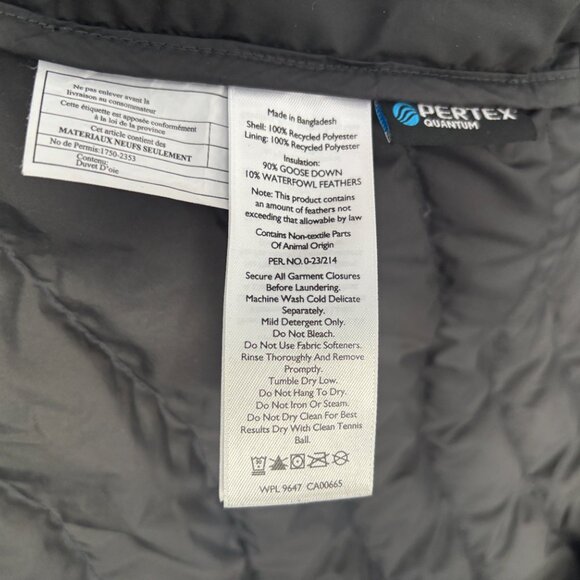 Excellent, barely used condition. Lightweight, yet warm. Three zippered outer pockets.