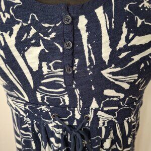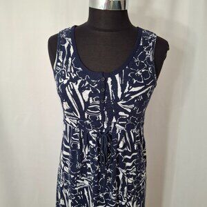 Eddie Bauer Beachy Maxi Blue Geo Print Empire High Waist Cool Cotton Dress Medium