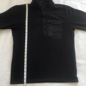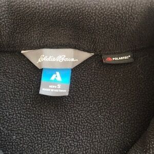 Overall, the Eddie Bauer Black Polartec 1/2 Zip Fleece is a high-quality and functional piece of clothing that is well-suited for cold weather activities such as hiking, camping, or skiing. Size small. Please see pics for all measurements.