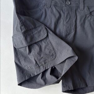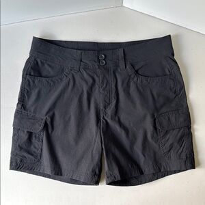 These Eddie Bauer black cargo shorts are crafted from durable, technical fabric, making them ideal for outdoor adventures. Designed with a clean and practical style, they offer a comfortable fit for hiking and other activities. Enjoy the perfect blend of functionality and style with these versatile shorts.