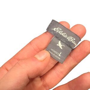 Stylish women's sweater by Eddie Bauer. Features a cozy hood and drawstrings. Perfect for casual wear. A bit pilled, price reflects that.