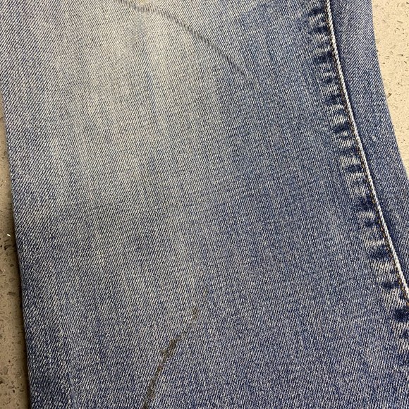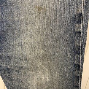 Add these Eddie Bauer Blue Jeans to your wardrobe these jeans have a few stains on the right leg (See photos) and a small tip on the right leg as well. Overall they are in good shape