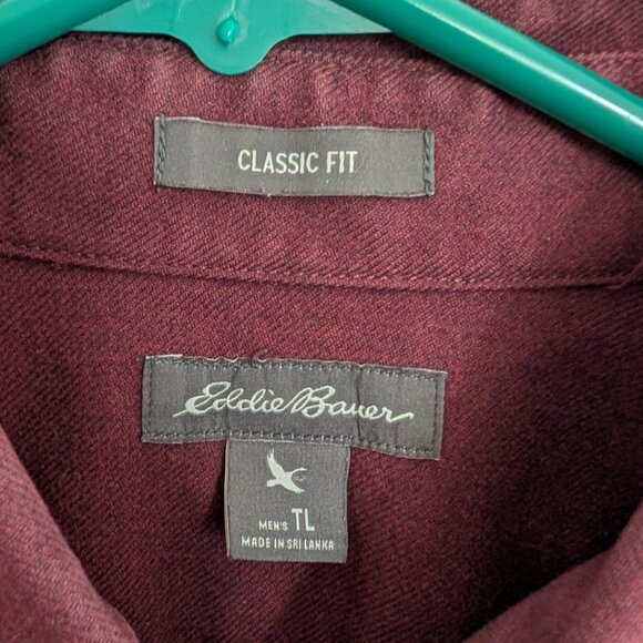 Eddie Bauer button up in a beautiful burgundy colour. Excellent condition, worn twice. Size large-tall, meaning it's a couple inches longer in the body.