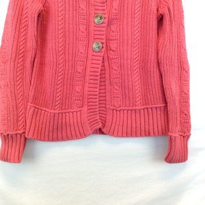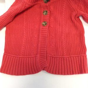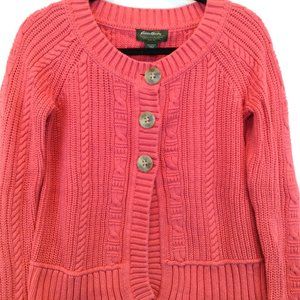 Eddie Bauer Coral Pink 3 Button Cropped Chunky Cable Knit Cardigan Sweater