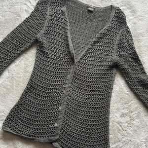Embrace effortless layering with this Eddie Bauer open-knit crochet cardigan top in a deep charcoal gray. Lightweight yet cozy, this button-up piece blends comfort with style — perfect for a boho, minimalist, or coastal grandma aesthetic.