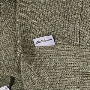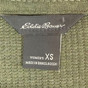 Eddie Bauer Shirt. Women's Size XS. Modal / spandex. Lots of stretch. Hunter green. Thermal waffle knit. V-Neck. Three quarter sleeves. Cross front detail.