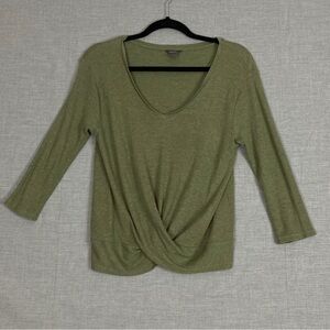 Eddie Bauer Cross Front Thermal Shirt XS Green Three Quarter Sleeve