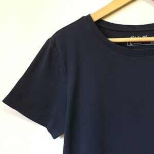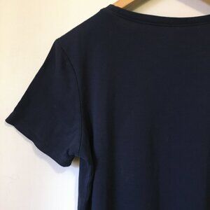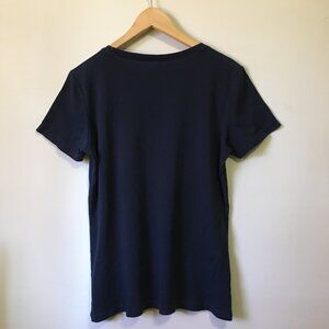 Very good preowned condition, dark navy blue, stretchy, short sleeve/women's cut I believe tee by Eddie Bauer. In great condition. Pairs beautifully with classic blue jeans and flannel shirts for a gender neutral look.