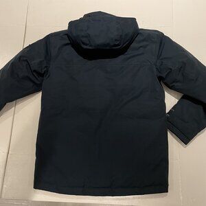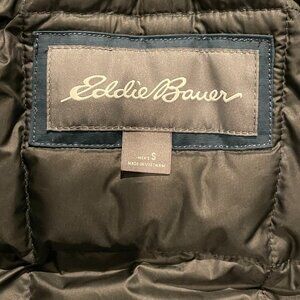 Men's Eddie Bauer Everson down winter jacket in indigo blue. New without tags. Tag is size small but fits a 40R or medium (chest/pit-to-pit measurement is 22.5"). Features: seam-sealed waterproof fabric, 650 fill power down insulation, 7 individual pockets, adjustable hem and snorkel hood for added rain protection. Warm, waterproof, medium/light weight and new. Thanks.
