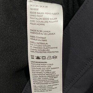 Eddie Bauer Fleece Lined Tech Pants Mens 34 x 30 Black Water Repellent Insulated