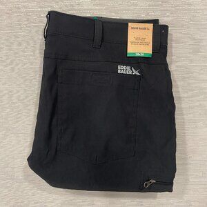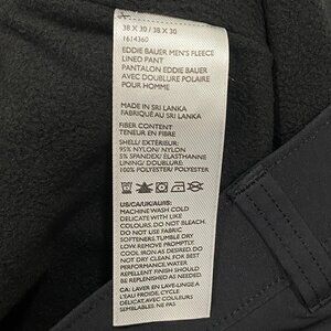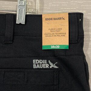 New with tags. Eddie Bauer - Fleece Lined Tech Pant Men's Water Repellent Lightweight Snow Pants Black Tag Size: 38 x 30 Measurements in photos. Please compare to an item of your own to ensure a good fit. Product information: Features: StormRepel® Durable Water-Repellent (DWR) finish FreeShade® UPF 50+ sun protection 2-way stretch fabric Secure zip cargo pocket on right leg Two front hand pockets Two back pockets with hook-and-loop closures Articulated knees for enhanced fit and mobility Regular fit Please message with any questions.