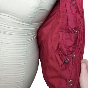 This is a red puffer vest with premium goose down fill by Eddie Bauer.
