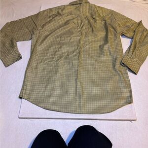 Stylish green plaid shirt. Button-down design. Perfect for casual outings.