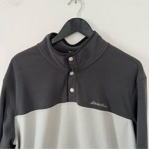 Eddie Bauer Grey Color Block Fleece Quarter Button Up Pullover Sweater