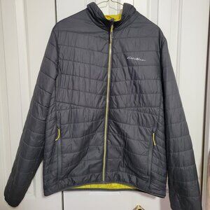 Eddie Bauer Grey/Yellow Reversible Light Down Jacket [Size: Men's Small]