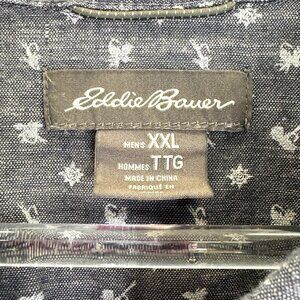 Eddie Bauer Grifton Shirt Mens XXL Blue Chambray Printed Short Sleeve Button Up