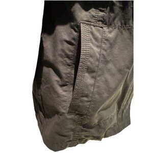 Looking for the perfect blend of practicality and style? This preowned Eddie Bauer zip-up rain jacket is your answer! Crafted from high-quality materials, it features a chic navy blue exterior with a cozy beige lining, ensuring you stay warm and fashionable in any weather.
