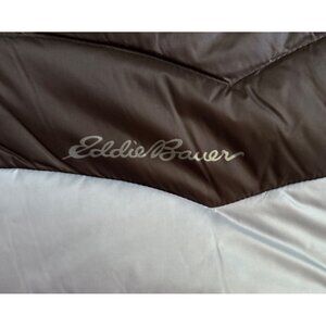 This Eddie Bauer jacket combines functionality with style, offering a two-tone design perfect for outdoor adventures. The down fill ensures warmth during colder months.