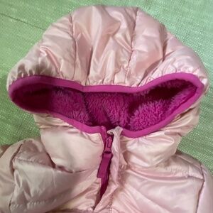 Eddie Bauer Kids Pink Down Puffer Hooded Snowsuit Bundler- Sz-6-12 mths