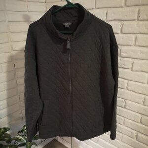 Eddie Bauer Ladies Full Zip Dark Grey Quilted Look Jacket