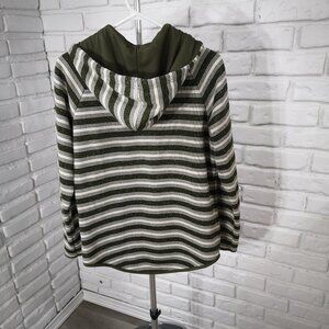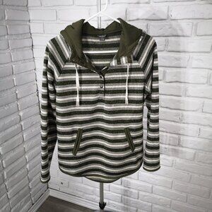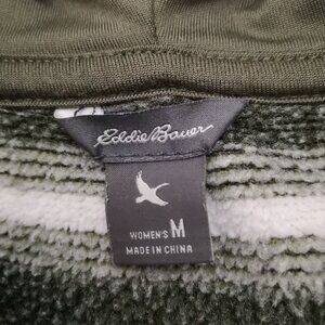 Eddie Bauer Ladies Size Medium Army Green/Off White Striped Fleece Lined Hoodie