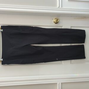 Heavy weight fabric, definitely no see through. Zipper pockets and a shaed gusset. Minor pilling in the crotch.