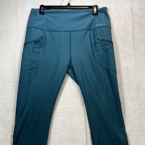 Eddie Bauer Leggings Womens Size Large Turquoise Cropped Athleisure Pockets