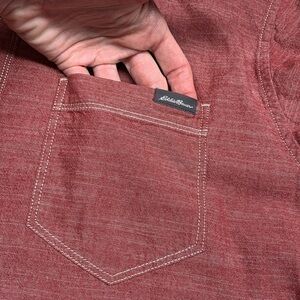 Eddie Bauer Long Sleeve Button Down Cotton Shirt Small Red