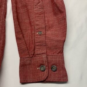 Colour Red - light lines running through fabric, along with pocket stitching give this shirt a western look!