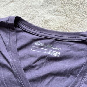 Keywords: Eddie Bauer top, cotton V-neck, long sleeve tee, casual top, women’s medium, purple shirt, soft cotton blend, comfortable basics, everyday wear, layering piece, travel top
