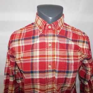Eddie Bauer Men S Relaxed Fit Red Cream Blue Plaid Button Front LS Flannel Shirt