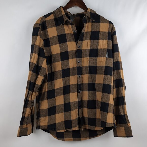 Eddie Bauer Men's Brown/Black Plaid Flannel Button Up Shirt Chest Pocket, Size M