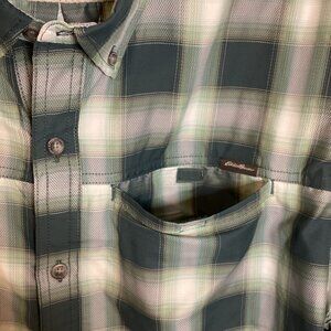 Eddie Bauer Men's Green Plaid Size 2XL Long Roll-Up Sleeves Shirt Pocket