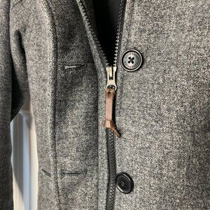 Eddie Bauer Men’s Grey Wool-Blend Long Winter Coat – Zip & Button Front
