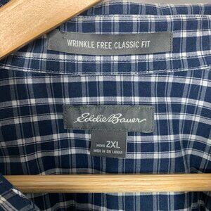 Classic, versatile, and built for comfort — this Eddie Bauer men’s long-sleeve button-down shirt features a timeless blue and white check pattern crafted from a cotton, polyester, and spandex blend for a soft feel with a hint of stretch. Designed for both everyday wear and outdoor ease, it offers the perfect balance of comfort, durability, and style.