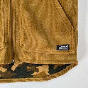 Eddie Bauer Men’s Medium Brown Tan Camo Fleece Ribbed Lined Hooded Vest Jacket