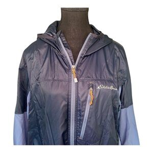 Eddie Bauer Men’s Radius Hybrid Jacket, Windbreaker,Blue, Size Large, Hooded EUC