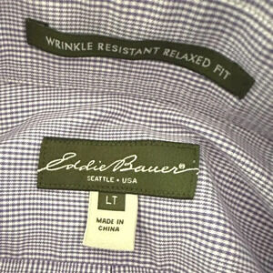 Eddie Bauer Mens Shirt Size LT Purple White Small Check Tall Long Sleeve