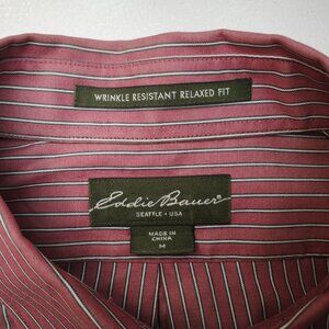 Eddie Bauer Men's Size Medium Relaxed Fit Wrinkle Resistant Rose Striped Shirt
