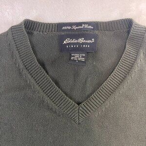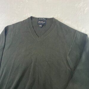 Eddie Bauer Men's Supima Cotton V Neck Solid Olive Army Green Knit Sweater L