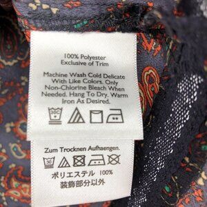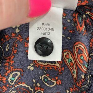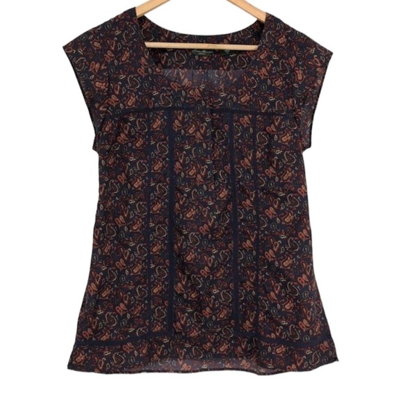Eddie Bauer Navy burgundy Paisley cap sleeve button front lace cutout blouse Med