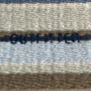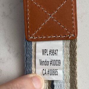Eddie Bauer Outfitter Striped Textile Belt Solid Brass Buckle, Metal Grommets, Genuine Leather Trim in Tan Cream Blue