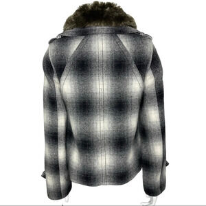 Eddie Bauer Pea Coat Wool Blend Plaid Coat Removable Faux Fur Collar Size XS